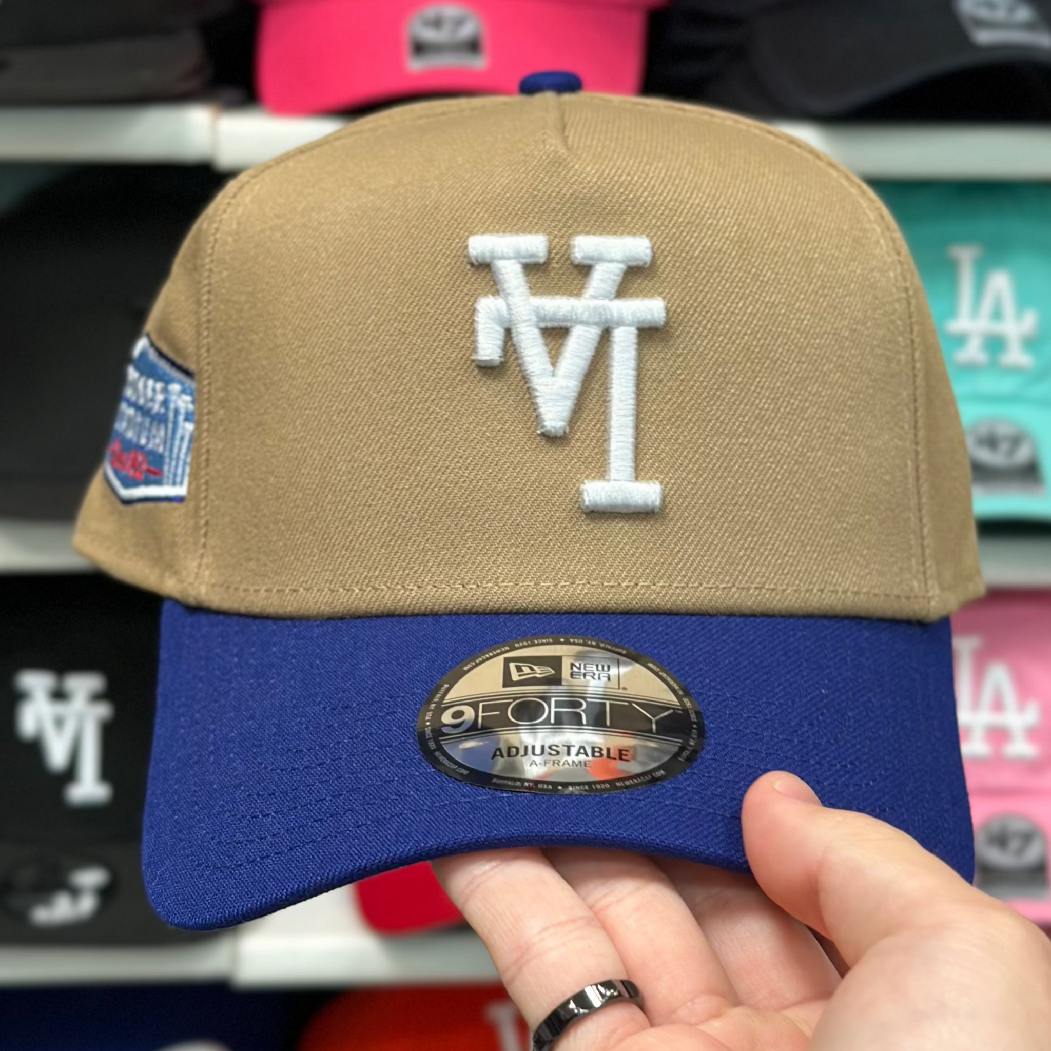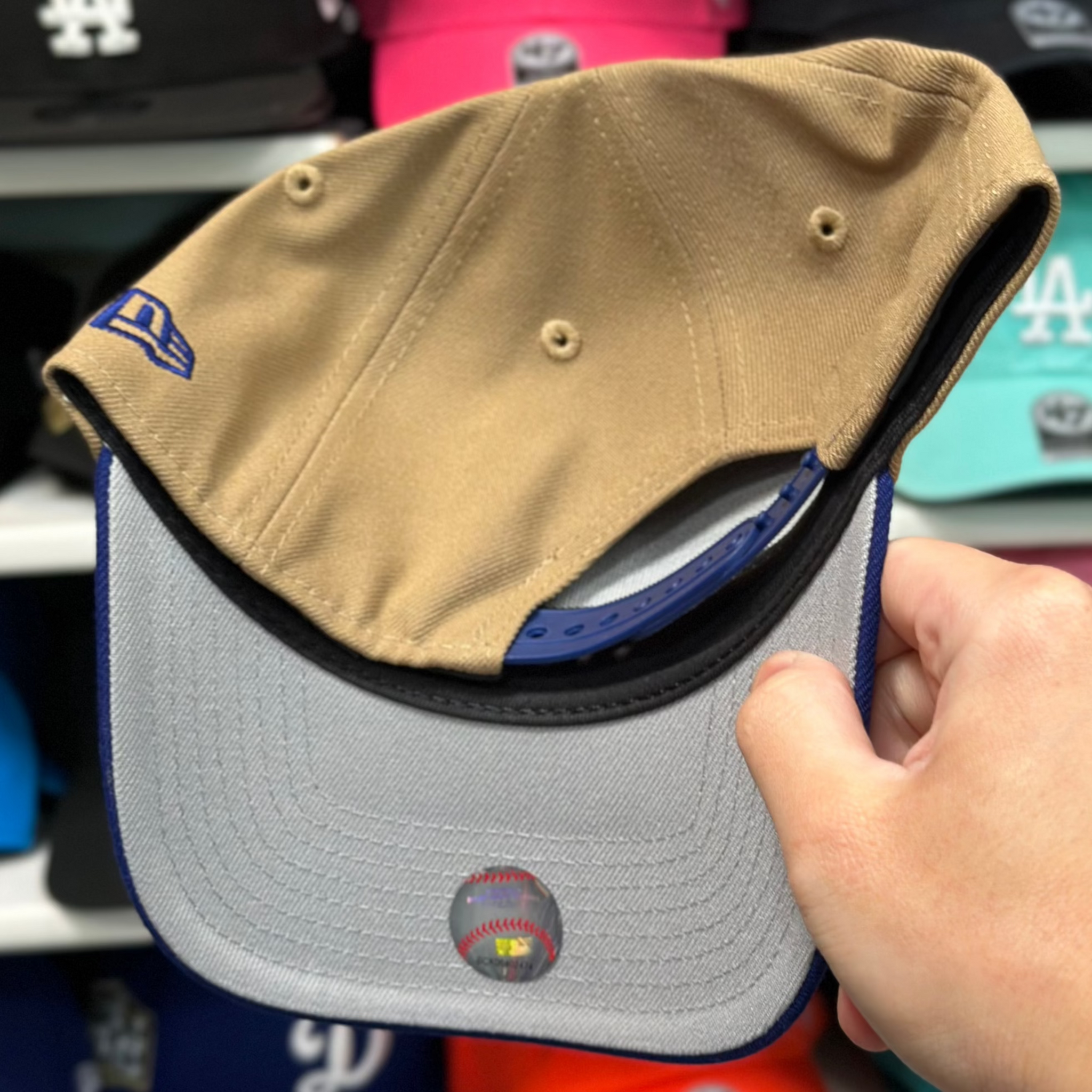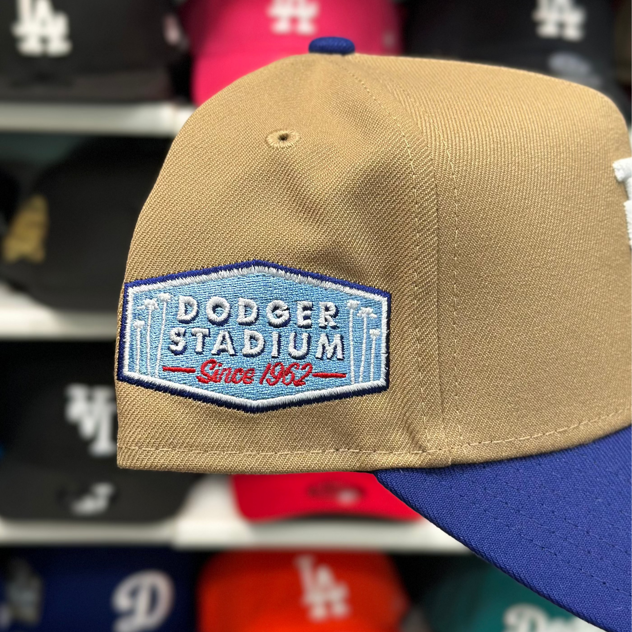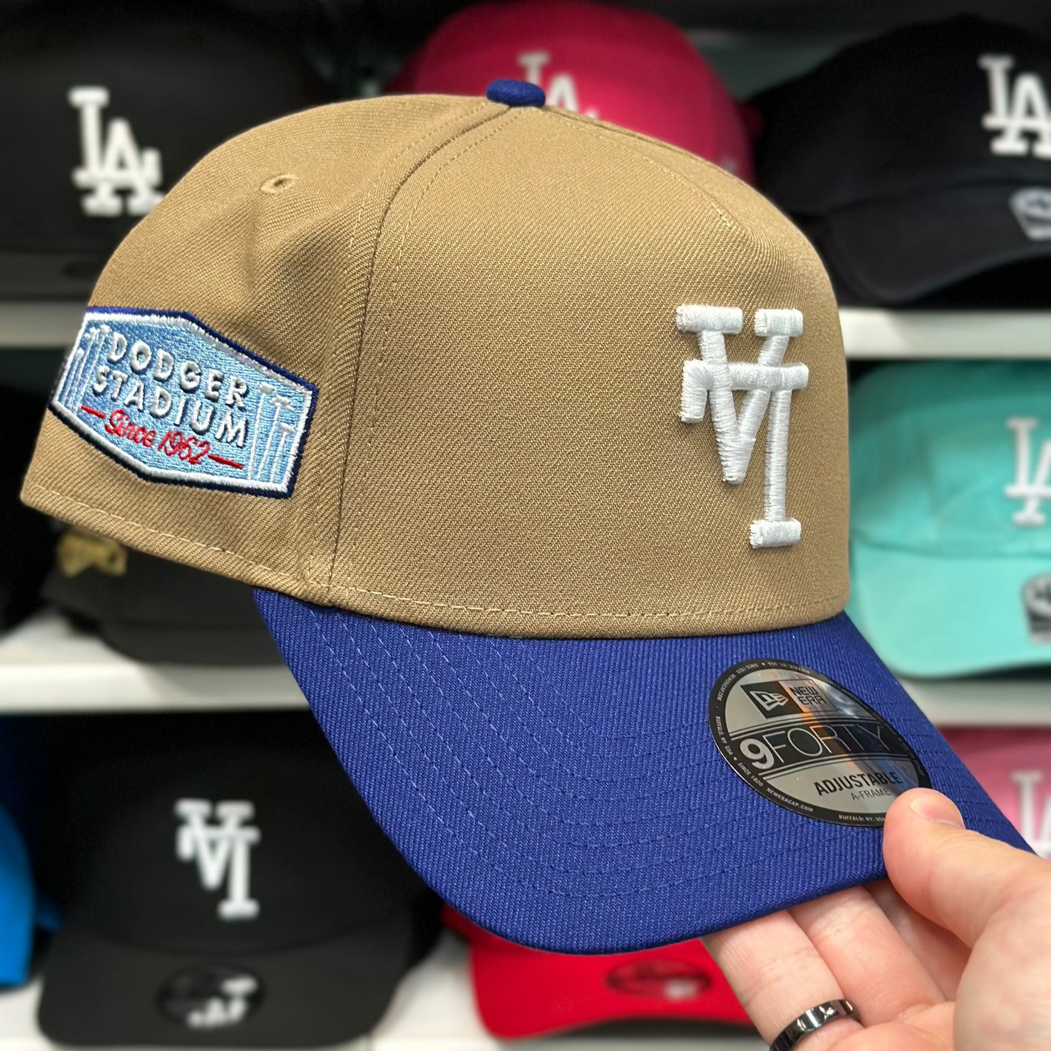 New Era Los Angeles Dodgers Upside Down Logo 'Since 1962' A-Frame Tan/Blue 9FORTY Snapback