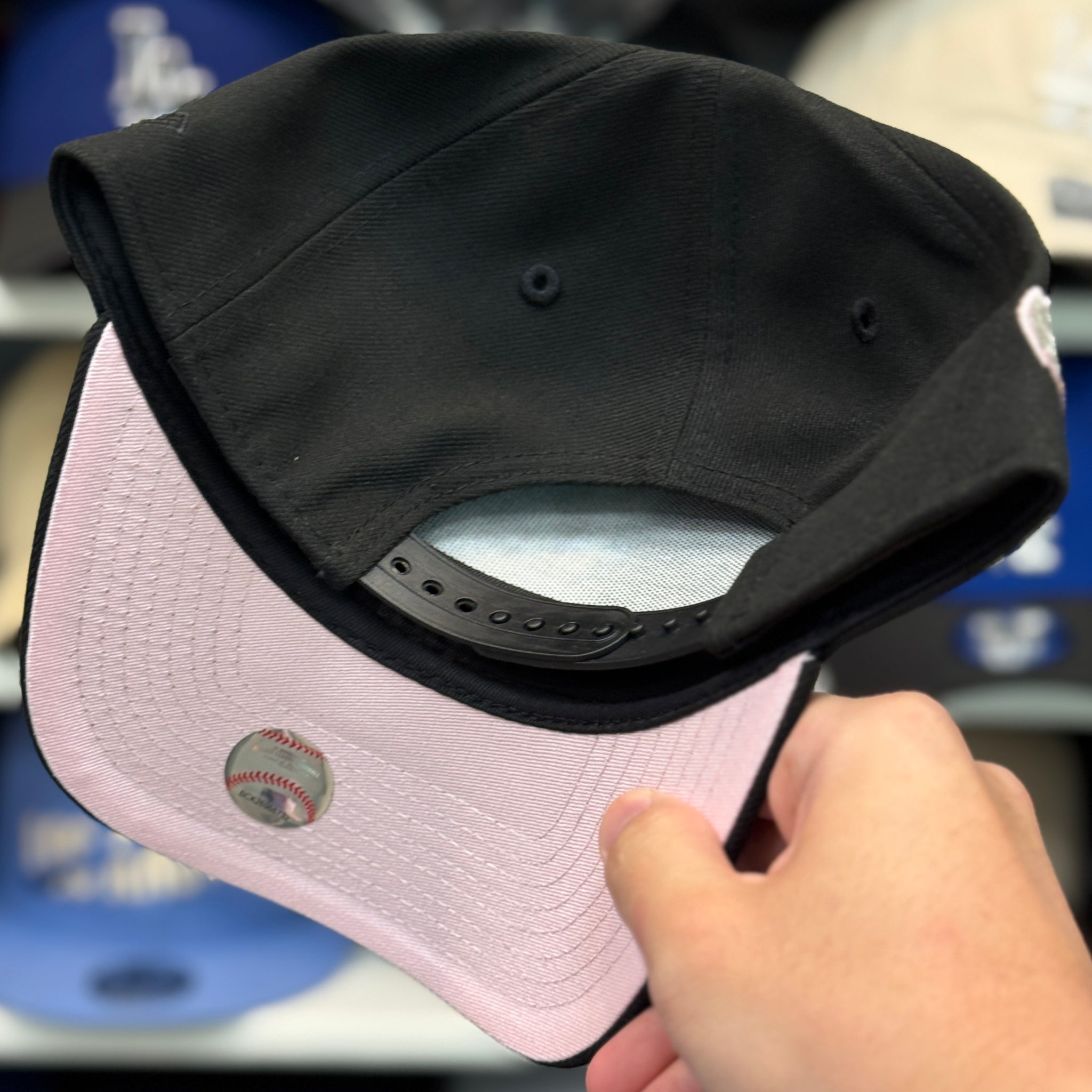 - Color: Black - Pink Chrome Stitch Outline - Pink Under Brim - Glow in the Dark