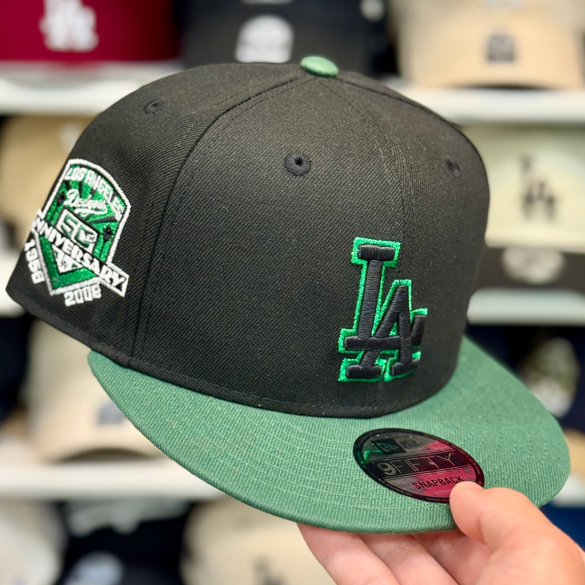 New Era Los Angeles Dodgers '50th Anniversary' Black/Green Chrome Stitch 9FIFTY Snapback