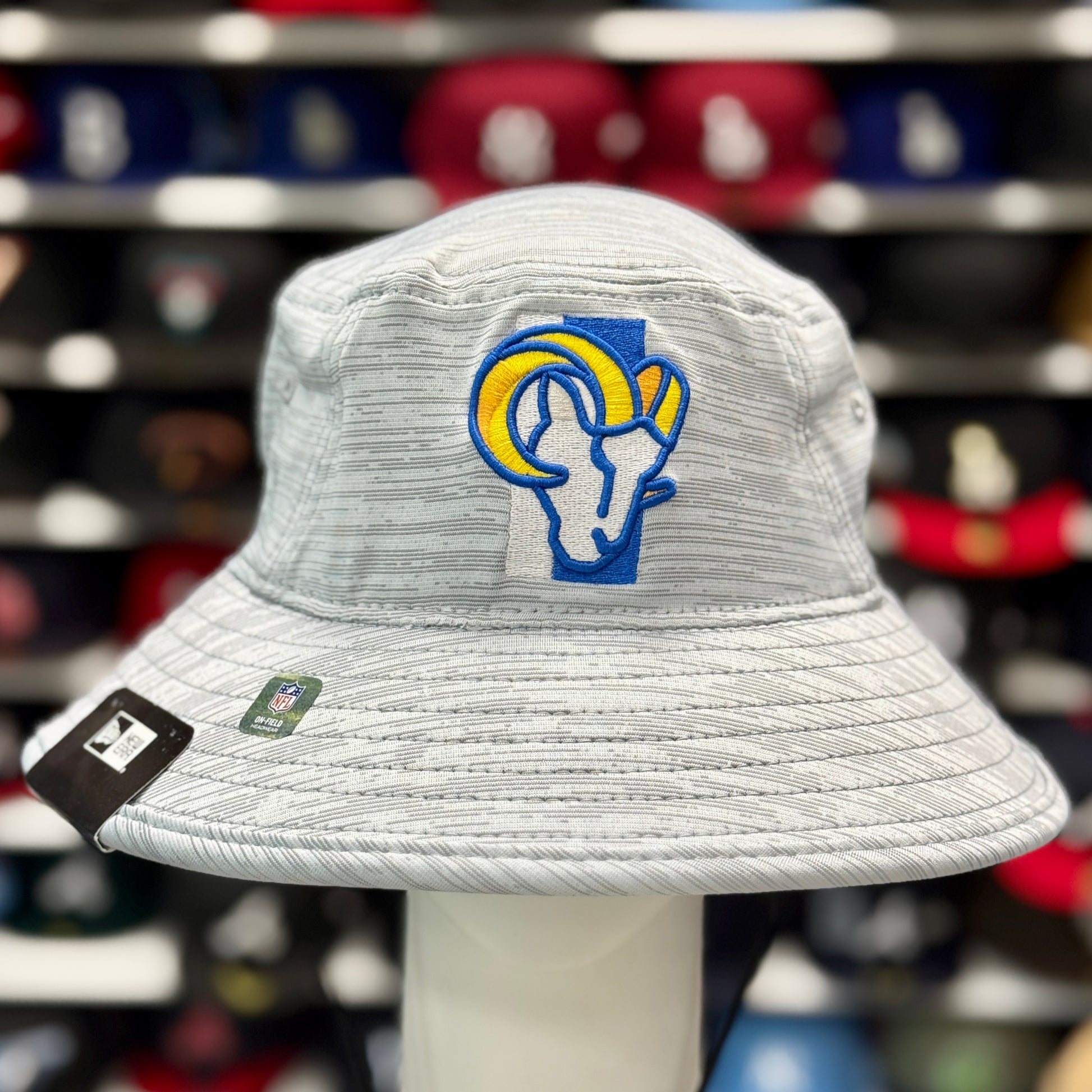 New Era Los Angeles Rams Bucket Hat | Silver / Blue Under Brim